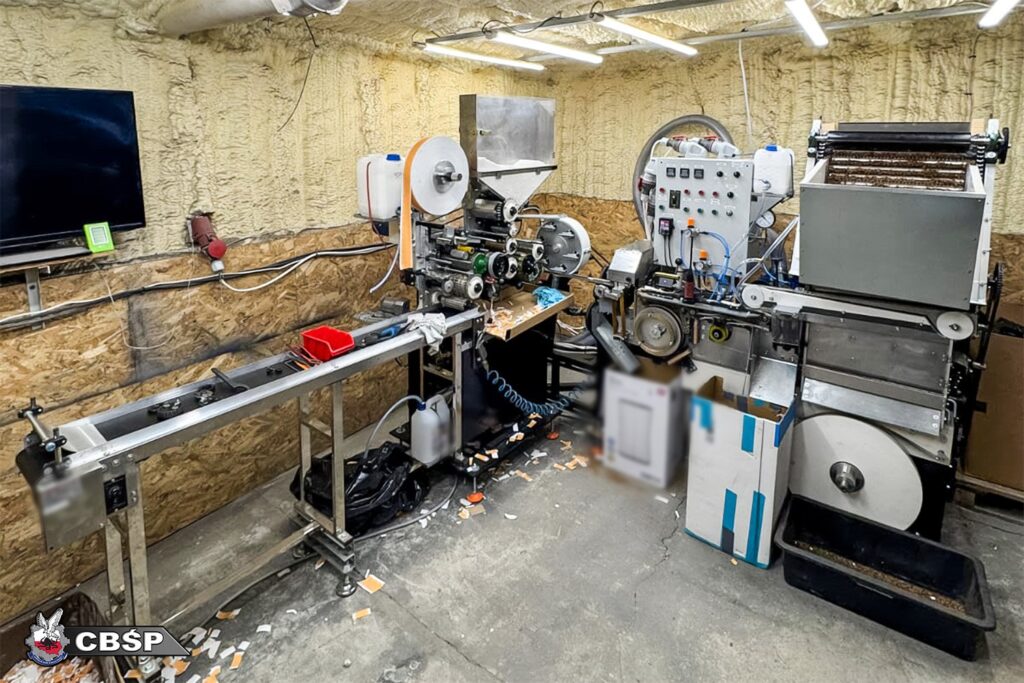 Na miejscu funkcjonariusze odkryli w pełni wyposażoną halę produkcyjną, w której znajdowała się profesjonalna linia technologiczna do produkcji wyrobów tytoniowych. W toku przeszukania posesji zabezpieczono nie tylko maszyny i komponenty służące do produkcji papierosów, ale również około 380 kilogramów tytoniu bez wymaganych polskich znaków akcyzy. Dodatkowo śledczy przejęli gotówkę w różnych walutach, której łączna wartość po przeliczeniu na złotówki przekroczyła kwotę 300 tysięcy złotych.