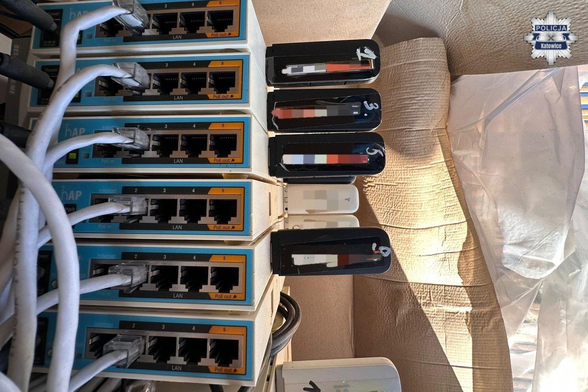 Funkcjonariusze z Wydziału do walki z Przestępczością Gospodarczą katowickiej komendy zatrzymali 34-letniego mężczyznę, który miał uczestniczyć w łańcuchu oszustw internetowych. W jego mieszkaniu, zlokalizowanym na terenie województwa mazowieckiego, zabezpieczono sprzęt służący do łamania haseł na kontach społecznościowych, w tym modemy internetowe, routery WiFi oraz karty SIM.