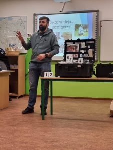 Szczególnym punktem programu było spotkanie z gościem specjalnym – technikiem kryminalistyki z Komendy Miejskiej Policji w Świnoujściu, podkomisarzem Krzysztofem Jachirą. Funkcjonariusz zaprezentował uczniom sprzęt wykorzystywany w codziennej służbie, opowiadał o zabezpieczaniu śladów oraz procedurach daktyloskopijnych. Uczestnicy mieli okazję zobaczyć, jak pobiera się odciski palców, a na pamiątkę otrzymali własne odbitki linii papilarnych.