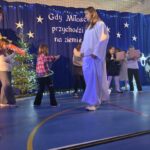 Kolejnym punktem programu było wręczenie nagród w dwóch szkolnych konkursach: na gwiazdkę betlejemską oraz na stroik świąteczny. Prace uczniów zachwycały pomysłowością i są pięknym świadectwem pielęgnowania polskich tradycji bożonarodzeniowych. Uroczystość zakończyła się wspólną modlitwą, dzieleniem się opłatkiem oraz szkolną wigilią. Był to czas pełen życzliwości, serdecznych życzeń i poczucia wspólnoty – tak ważnego w polskiej tradycji i w życiu szkoły. Serdecznie dziękujemy Rodzicom za zaangażowanie i pomoc w organizacji tej pięknej uroczystości. Dzięki wspólnej pracy i otwartym sercom mogliśmy razem przeżyć ten dzień w atmosferze bliskości, wzruszenia i radości.