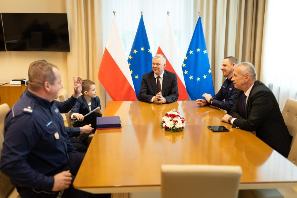 Minister spraw wewnętrznych i administracji spotkał się w gmachu MSWiA z sierż. szt. Konradem Klimowiczem. Pogratulował funkcjonariuszowi niezwykłej odwagi.