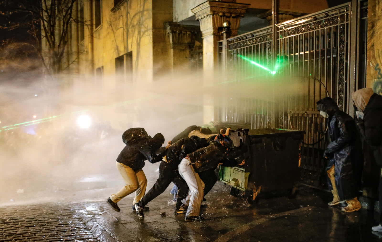 Zaledwie kilkadziesiąt minut trwał wiec przeciwników zawieszenia negocjacji z Unią Europejską. Później do akcji wkroczyły oddziały policji. Najpierw w bocznych uliczkach funkcjonariusze użyli wobec demonstrantów armatek wodnych i gazu łzawiącego, a później starcia przeniosły się na ulicę Rustawelego, przed główne wejście do budynku parlamentu.