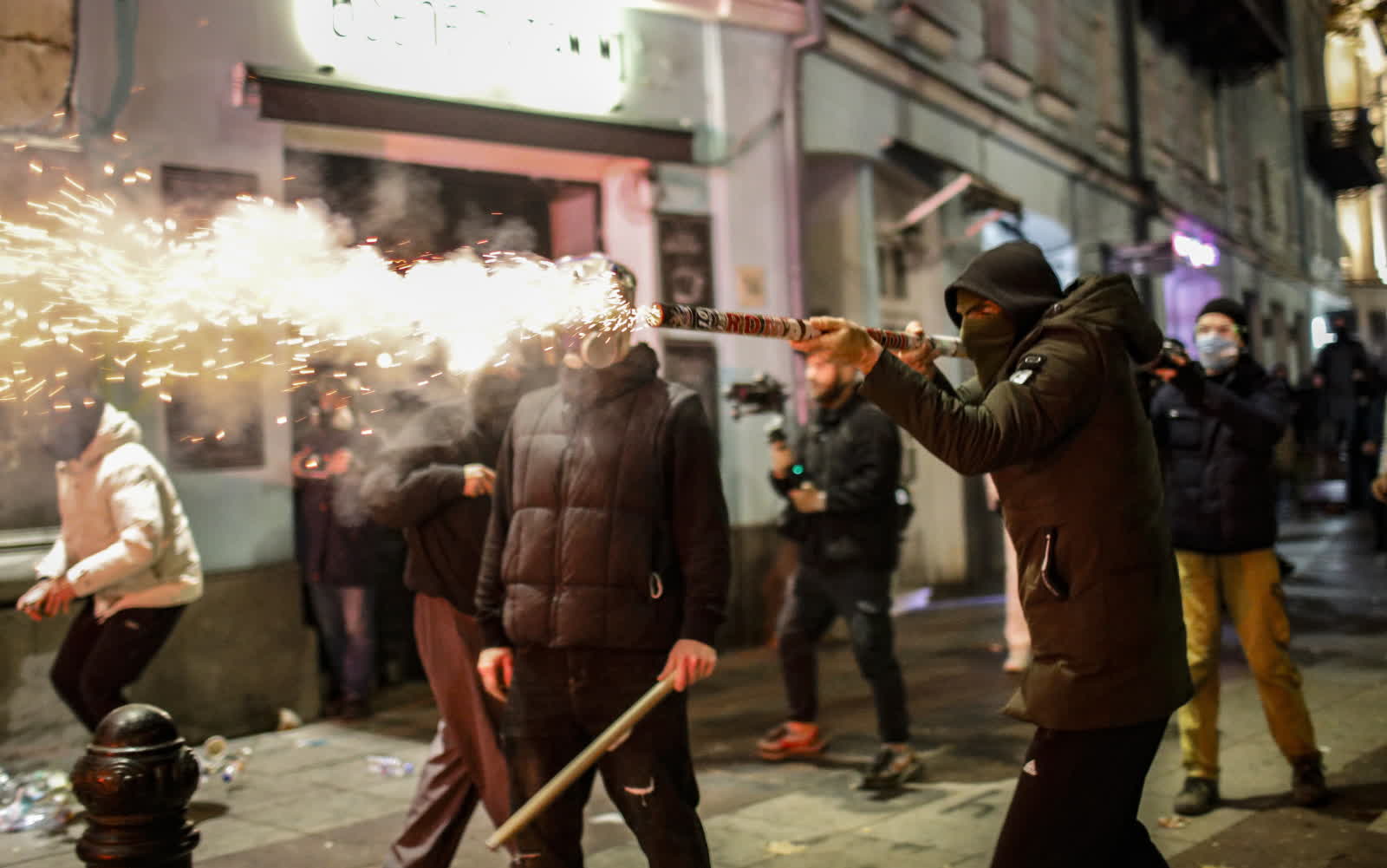 Tam demonstranci palili ogniska, rzucali różnymi przedmiotami w policjantów, a funkcjonariusze zatrzymywali każdego, kto stawał im na drodze. Demonstranci chowali się w pobliskich sklepach i cerkwi, albo kładli się na asfalcie, żeby zatrzymać marsz policji.