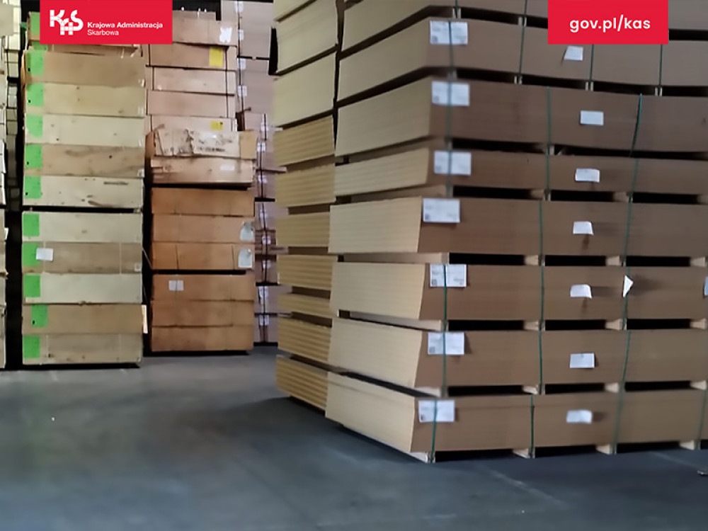 — Przeszukano miejsca zamieszkania podejrzanych, pomieszczenia biurowe oraz hale magazynowe w województwie mazowieckim, wielkopolskim i podlaskim. Zabezpieczono m.in. dokumentację księgową, sprzęt elektroniczny oraz sklejkę, która znajdowała się w magazynach — mówi Justyna Pasieczyńska, rzeczniczka Szefa KAS.