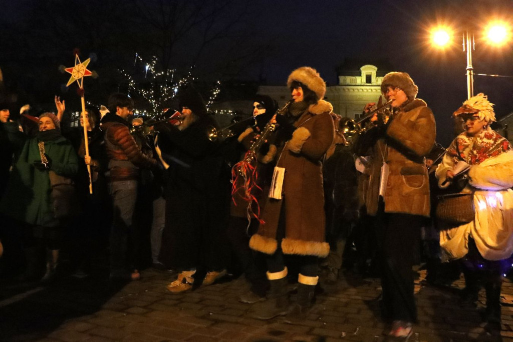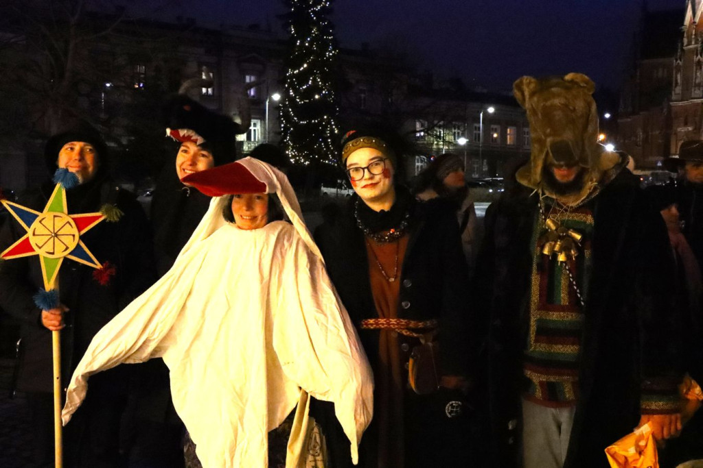 Na Placu Wolnica kolędnicy zatrzymali się na pierwszy dłuższy moment. Krótki występ, kilka minut muzyki, bez sceny i bez nagłośnienia. Tylko głosy i instrumenty. Część osób została na dłużej, inni ruszyli dalej, dołączając do pochodu już w drodze.