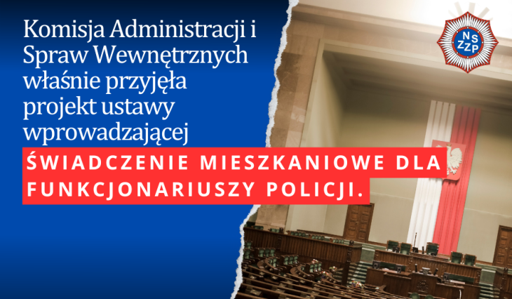Zarząd Główny NSZZ Policjantów z satysfakcją informuje, że Komisja Administracji i Spraw Wewnętrznych Sejmu RP przyjęła projekt ustawy wprowadzającej świadczenie mieszkaniowe dla funkcjonariuszy Policji.