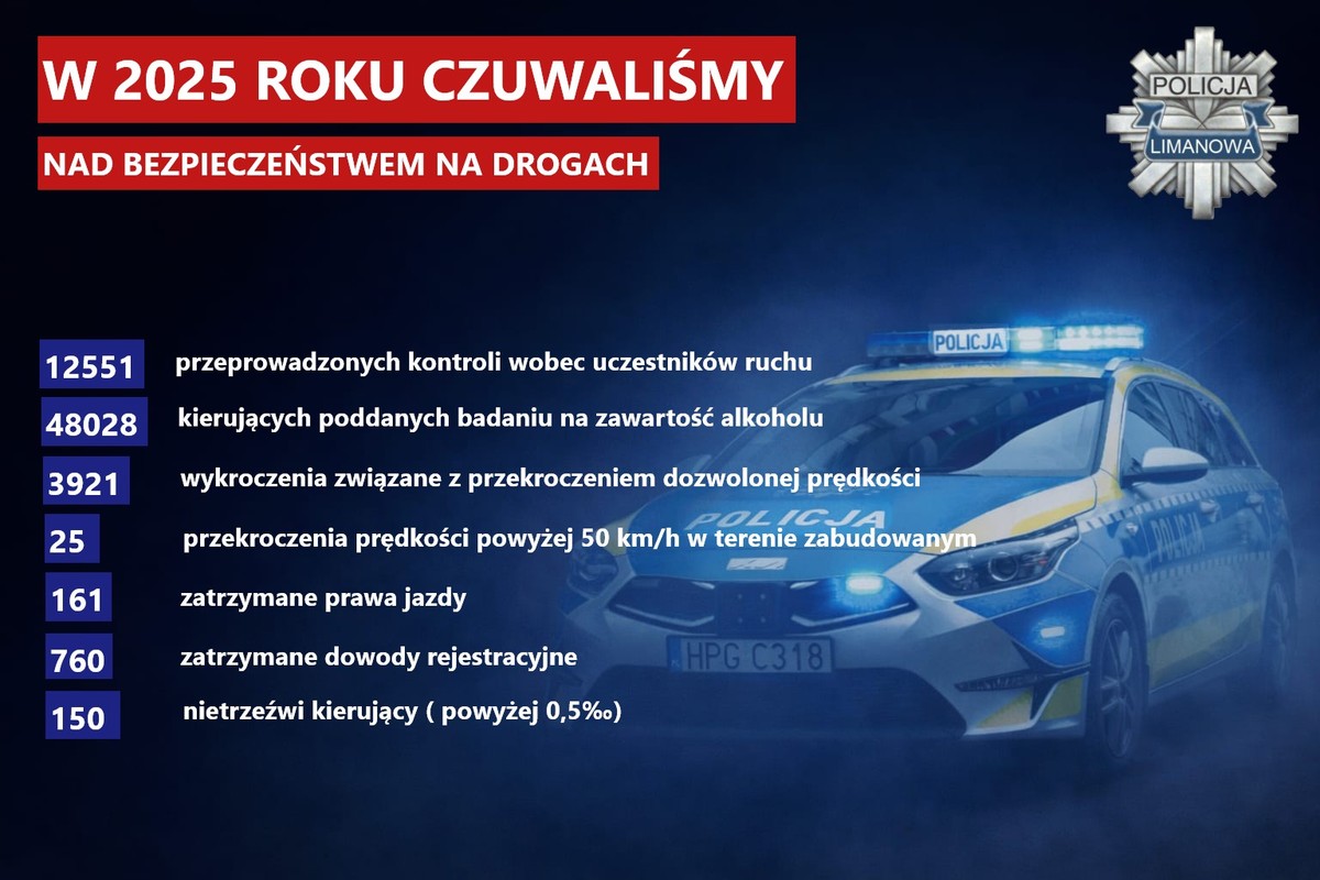 Limanowscy policjanci podsumowali 2025 rok. Działania, które były realizowane są przedstawione w oparciu o statystykę i dane liczbowe, które zostały ujęte w tym zestawieniu.