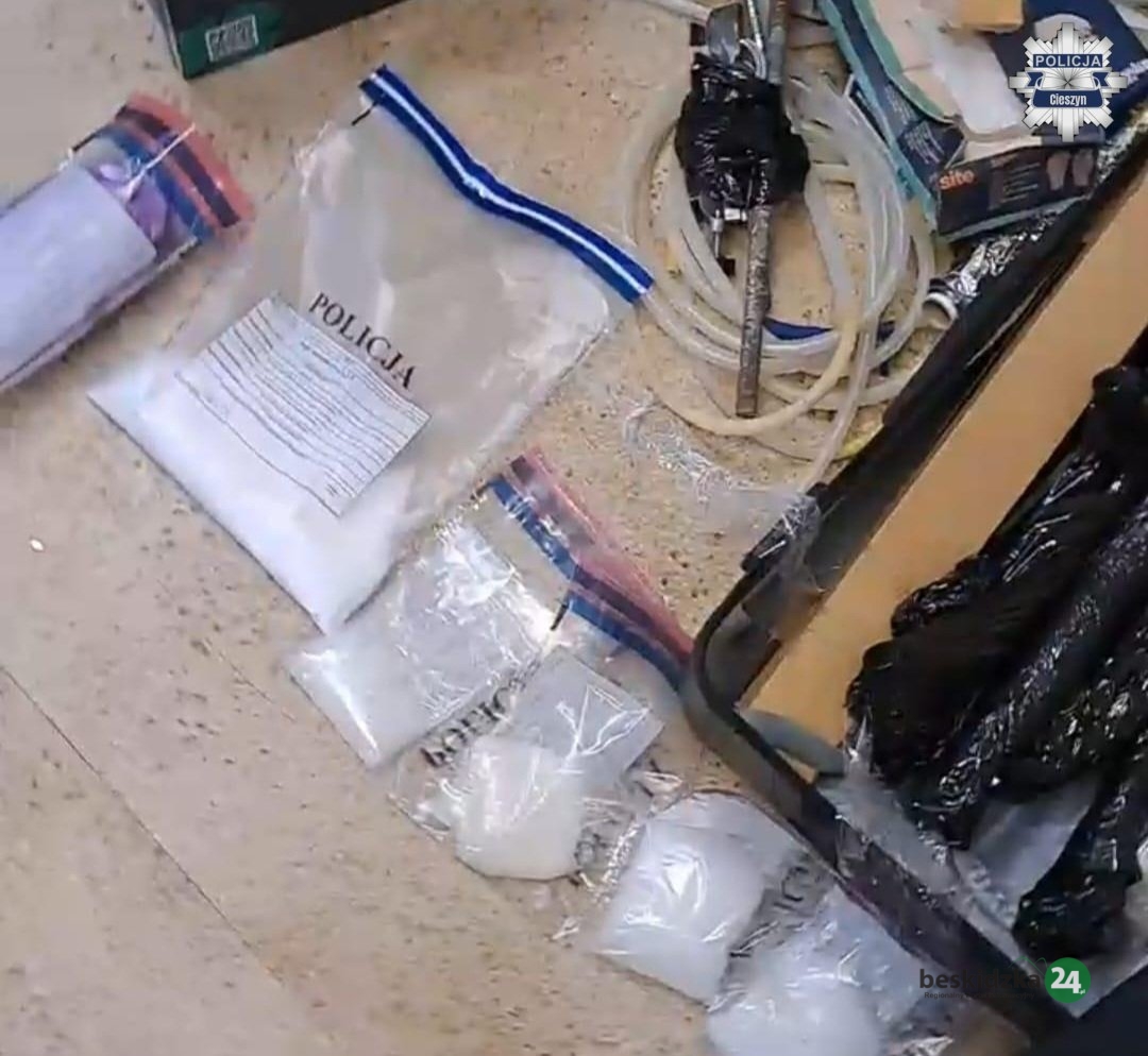 Cieszyńscy mundurowi ujęli dwóch obywateli Czech podejrzanych o wytwarzanie i handel narkotykami. Policjanci wydziału kryminalnego z zespołu do spraw narkotyków uderzyli w momencie, gdy mężczyźni przenosili z mieszkania do samochodu środki odurzające i sprzęt do ich produkcji.