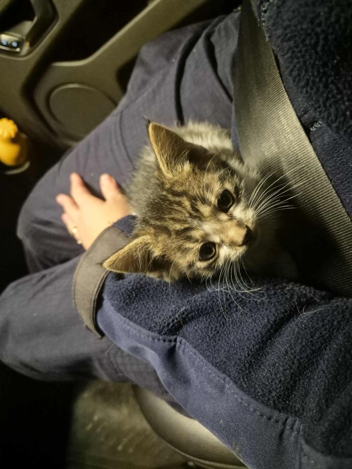 „Na miejscu gwałtownie okazało się, iż sytuacja jest trudna, ale nie bez wyjścia. Kotek, choć płochliwy, pozwolił sobie pomóc” – relacjonują mundurowi.