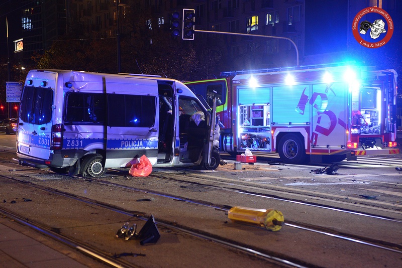 W nocy z piątku na sobotę, kilkanaście minut po północy, na skrzyżowaniu ulic Marszałkowskiej i Żurawiej w centrum Warszawy doszło do poważnego wypadku z udziałem policyjnego radiowozu oraz samochodu przewozu osób. W wyniku zderzenia rannych zostało pięć osób, w tym czterech funkcjonariuszy Policji.