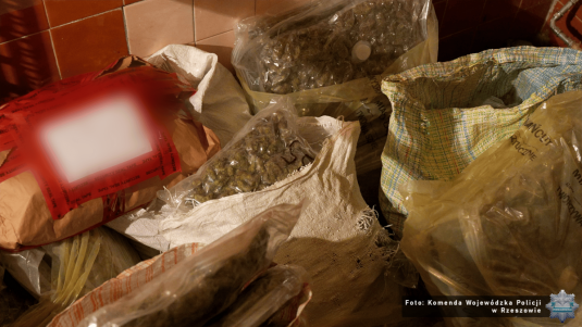 W połowie lutego bieżącego roku, funkcjonariusze Wydziału Dochodzeniowo-Śledczego Komendy Wojewódzkiej w Rzeszowie, realizując postanowienie Prokuratury Okręgowej w Rzeszowie, w ramach kontynuacji czynności procesowych wykonywanych do prowadzonego postępowania, wspólnie z policjantami z Wydziału dw. z Przestępczością Narkotykową Komendy Wojewódzkiej Policji w Rzeszowie, technikiem kryminalistyki z Komendy Powiatowej Policji w Łańcucie, a także funkcjonariuszami Służby Celno-Skarbowej z Podkarpackiego Urzędu Celno-Skarbowego w Przemyślu i funkcjonariuszami CBŚP, podczas przeszukania pomieszczeń należących do 27-letniego mieszkańca powiatu łańcuckiego, zabezpieczyli ponad 60 kg narkotyków. Była to marihuana oraz kokaina i haszysz. Ich czarnorynkowa wartość to 3 205 898 złotych.
