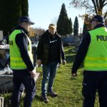 Mundurowi zwracali uwagę nie tylko na kwestię ruchu drogowego i bezpieczeństwa jego niechronionych uczestników. Przekazywali też wskazówki, jak przygotować się na wizytę na cmentarzu w okresie Wszystkich Świętych, kiedy nekropolie są wypełnione ludźmi.