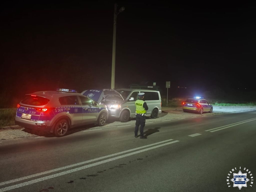 W Jóźwikowie w gminie Radoszyce auto 36-latka uległo awarii. Mężczyzna szedł przez siedem kilometrów poszukując pomocy. W końcu otrzymał ją od policjantów.