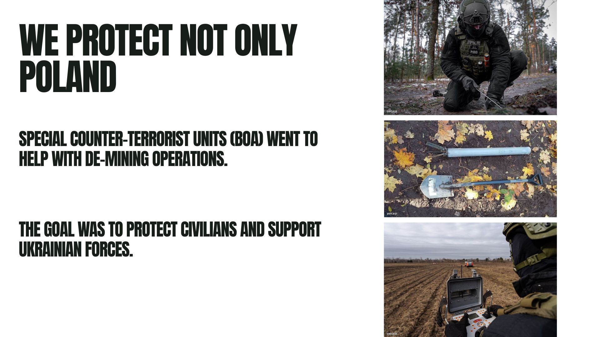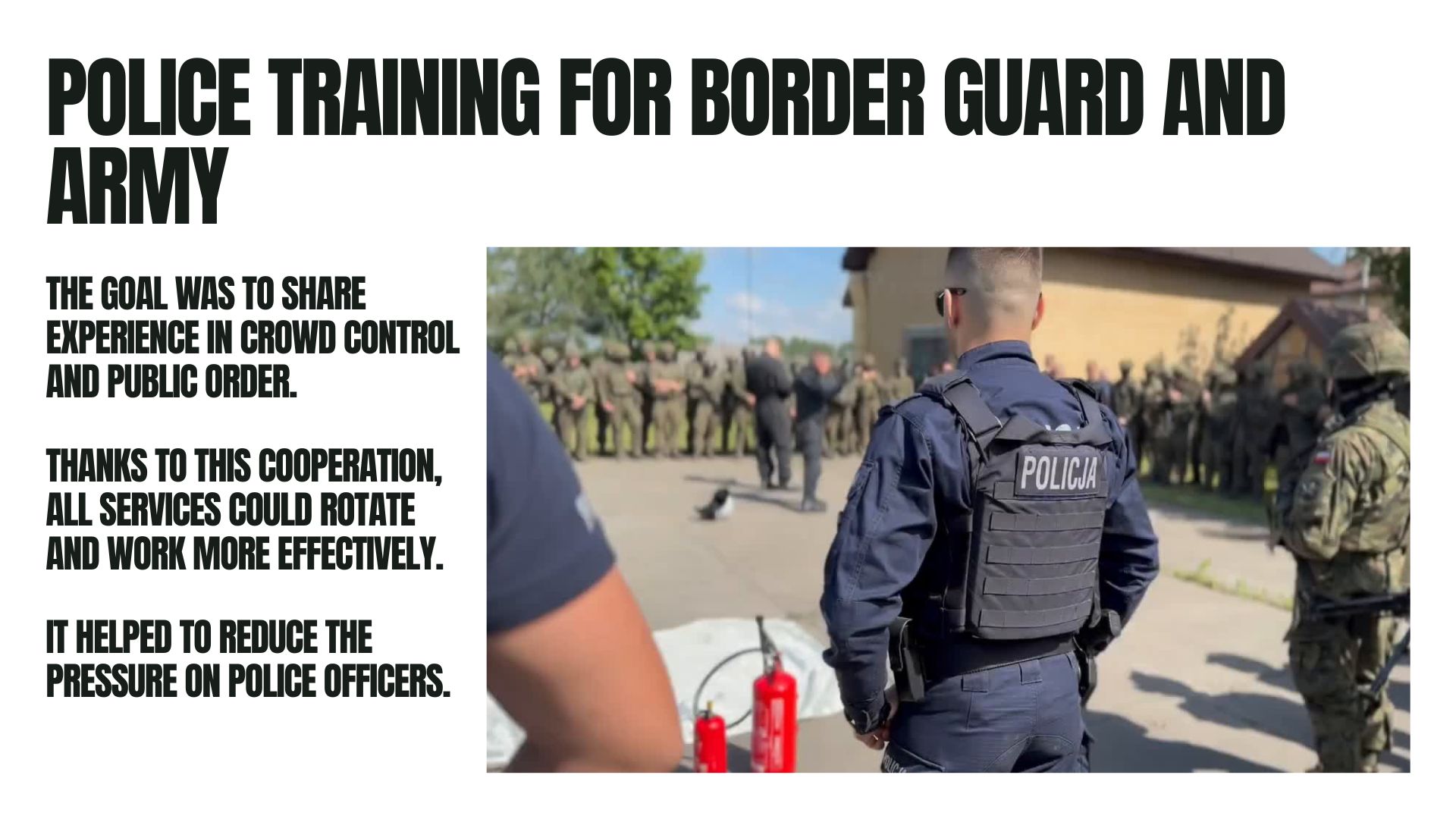 - "Dla kolegów z Hiszpanii, Portugalii czy południa Włoch rzeczywistość wojny hybrydowej na naszej wschodniej granicy była czymś zupełnie nowym. Wielu z nich po raz pierwszy zobaczyło skalę i charakter zagrożenia, z jakim mierzy się Polska Policja".
