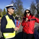 Aspirant Łukasz Pietras z Wydziału Ruchu Drogowego KWP przekonuje, iż dzięki odblaskom jesteśmy lepiej widoczni.