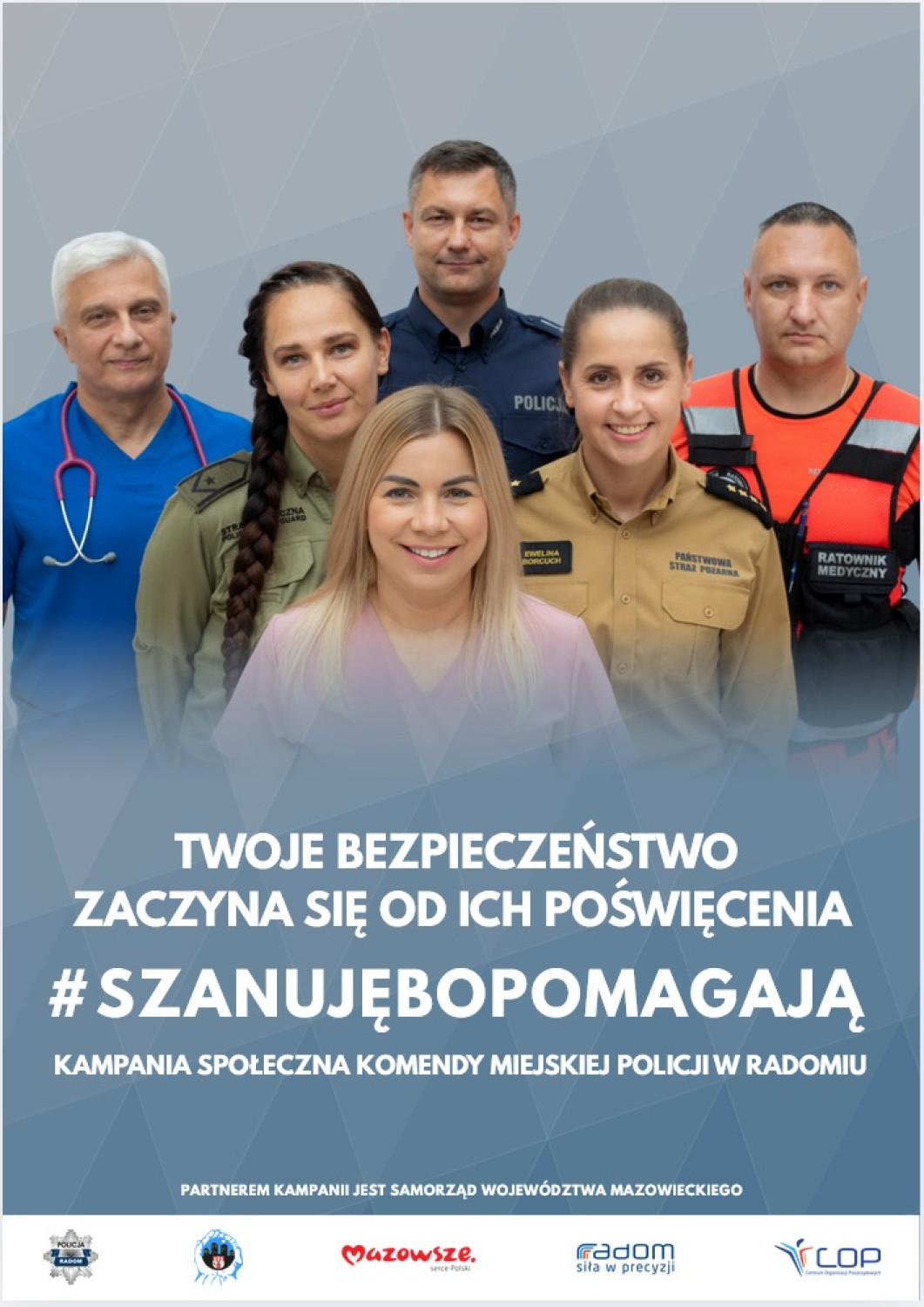 Niemal każdego dnia zespoły ratownicze karetek radomskiego pogotowia ratunkowego spotykają się z agresją ze strony pacjentów. W kamienicy Deskurów w Radomiu Komenda Miejska Policji przeprowadziła kampanię #SzanujęBoPomagają. Jej głównym celem jest podniesienie świadomości społecznej na temat roli funkcjonariuszy publicznych oraz przeciwdziałanie znieważeniom i agresji wobec osób pełniących służbę publiczną. Pomysłodawcy wydarzenia chcą podkreślić, jak ważne jest, by ci, którzy pomagają, mogli to robić bez obawy o własne zdrowie i życie.