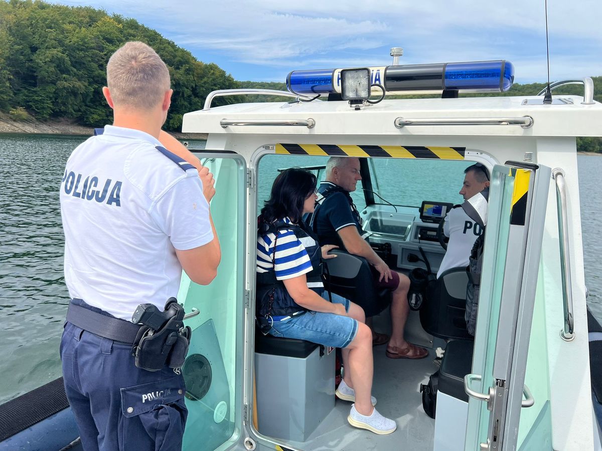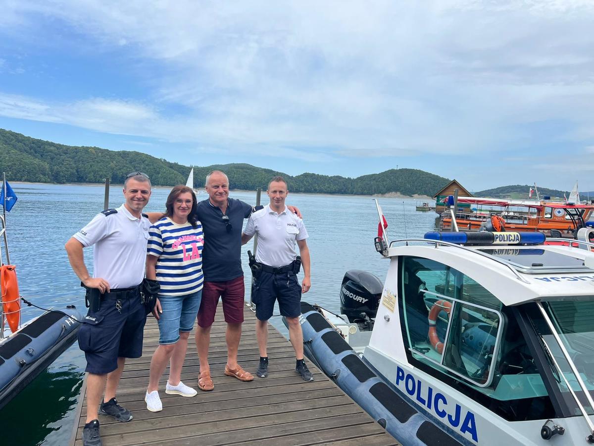 Policyjnym wodniakom, w ich patrolu pełnionym na Jeziorze Solińskim towarzyszyli Pan Adam i Pani Krystyna. Małżeństwo wygrało licytację w ramach balu charytatywnego zorganizowanego przez Powiatowy Oddział Towarzystwa Przyjaciół Dzieci w Lesku. Wygraną był rejs podczas patrolu prewencyjnego łodzią motorową po „bieszczadzkim morzu”.