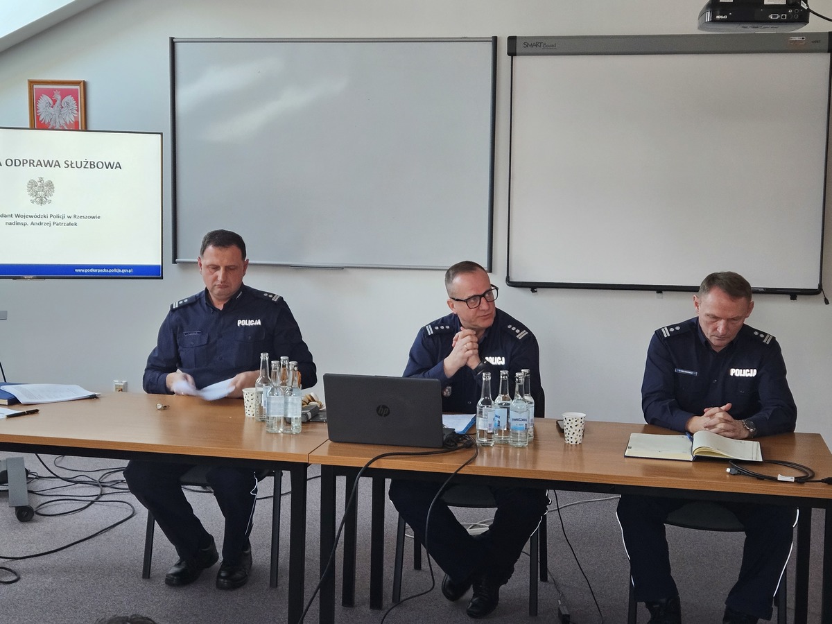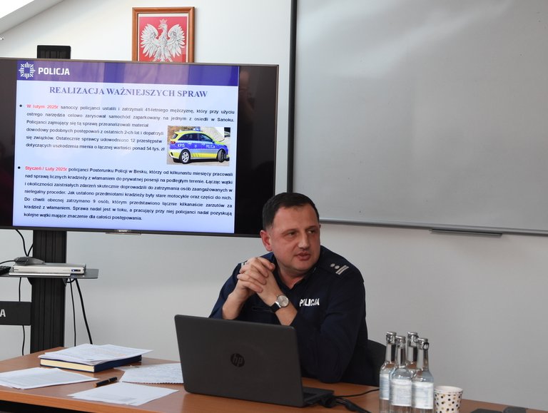 W Komendzie Powiatowej Policji w Sanoku odbyła się roczna narada służbowa podsumowująca pracę sanockich funkcjonariuszy w 2025 roku. W spotkaniu udział wzięli Zastępca Komendanta Wojewódzkiego Policji w Rzeszowie insp. Jacek Juwa, Komendant Powiatowy Policji w Sanoku mł. insp. Artur Kowalik, I Zastępca Komendanta mł. insp. Daniel Walankiewicz, zaproszeni goście oraz przedstawiciele wszystkich pionów i komórek organizacyjnych sanockiej komendy.
