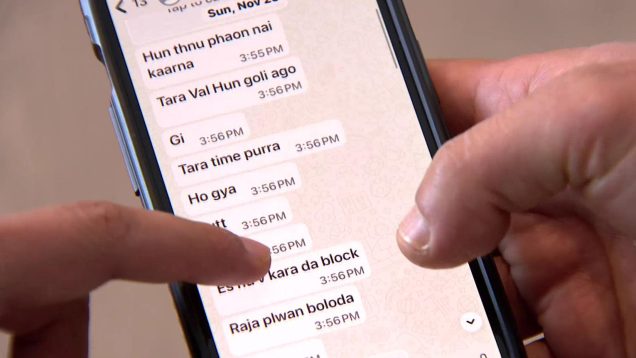 Zdjęcie przedstawiające groźby otrzymane przez Ranbira Manda w ramach, jak twierdzi, próby wymuszenia na jego rodzinie.