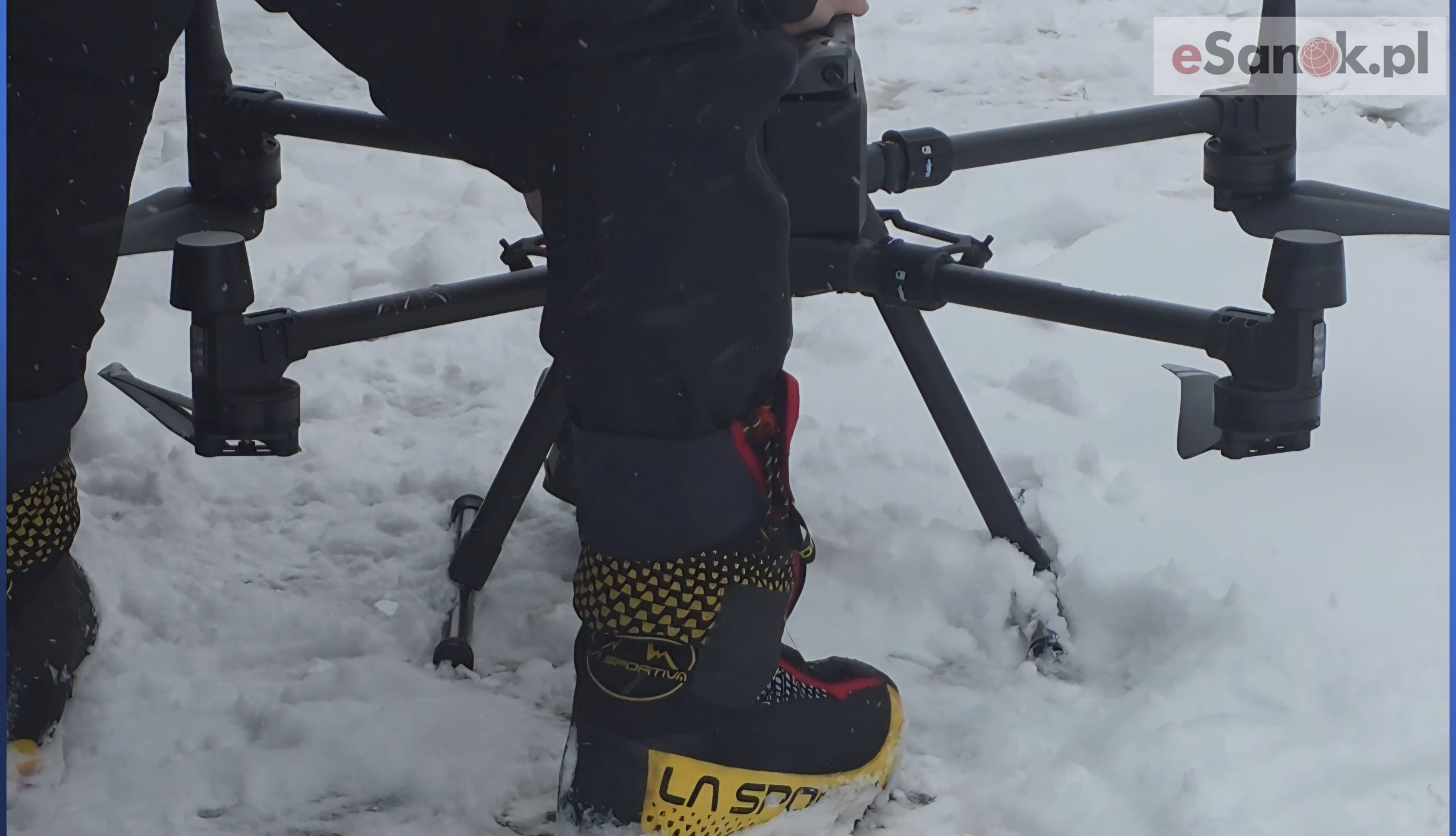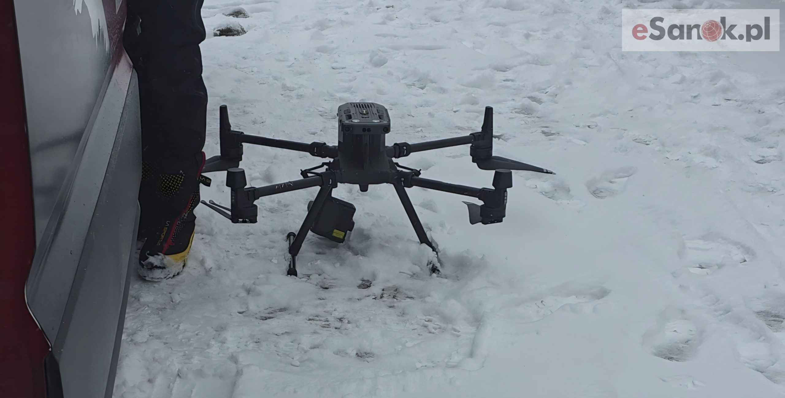 Na miejscu byli też ratownicy Górskiego Ochotniczego Pogotowia Ratunkowego, którzy mieli do dyspozycji specjalistyczny sprzęt, w tym dron, gotowy do użycia w razie potrzeby. Choć nie było konieczności jego użycia, obecność sprzętu zapewniała służbom pełną gotowość i możliwość szybkiej reakcji w trudnym terenie.