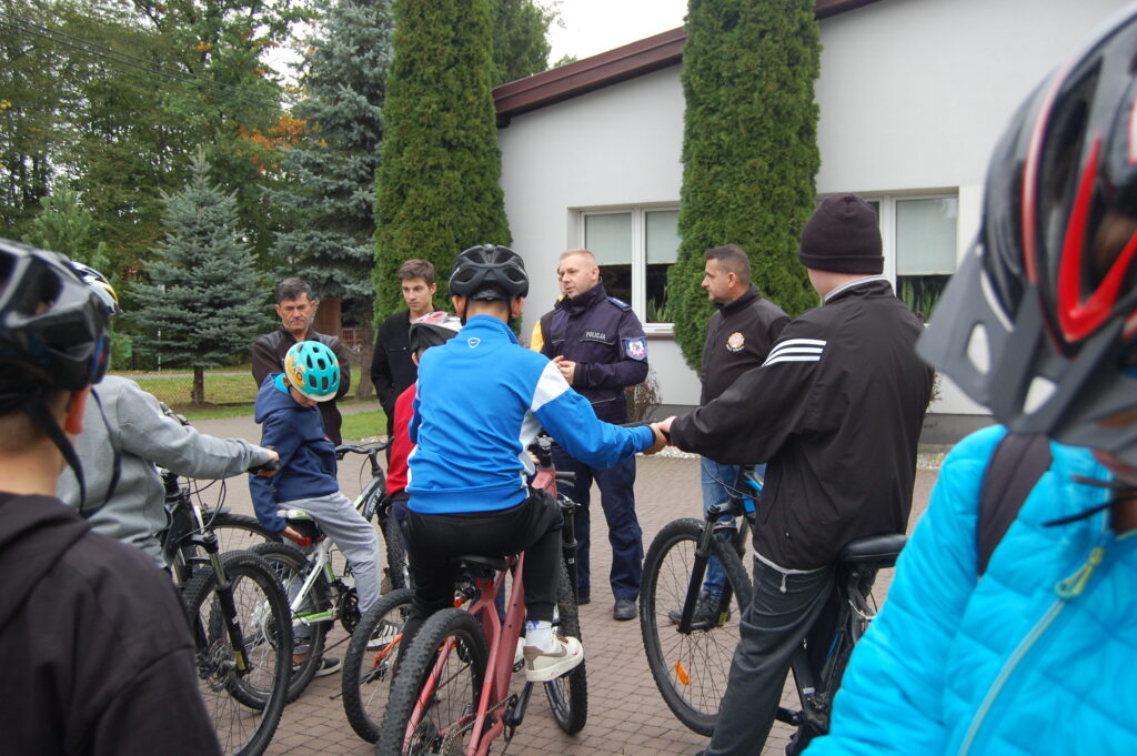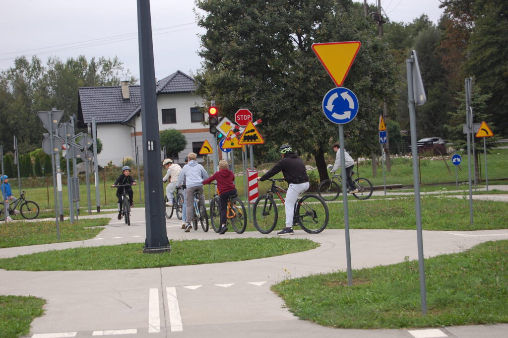 Funkcjonariusz Wydziału Ruchu Drogowego Komendy Powiatowej Policji w Bochni asp. Stanisław Sojka na Miasteczku Ruchu Drogowego przy Szkole Podstawowej w Starym Wiśniczu. Poruszonych zostało w wiele zagadnień dotyczących przepisów związanych z poruszaniem się po drogach pieszo, na rowerach i hulajnogach. W praktyce sprawdzono posiadaną wiedzę i umiejętności.