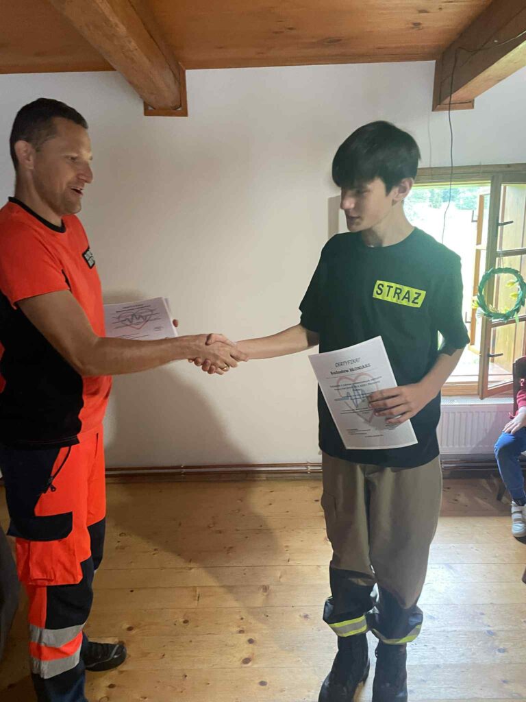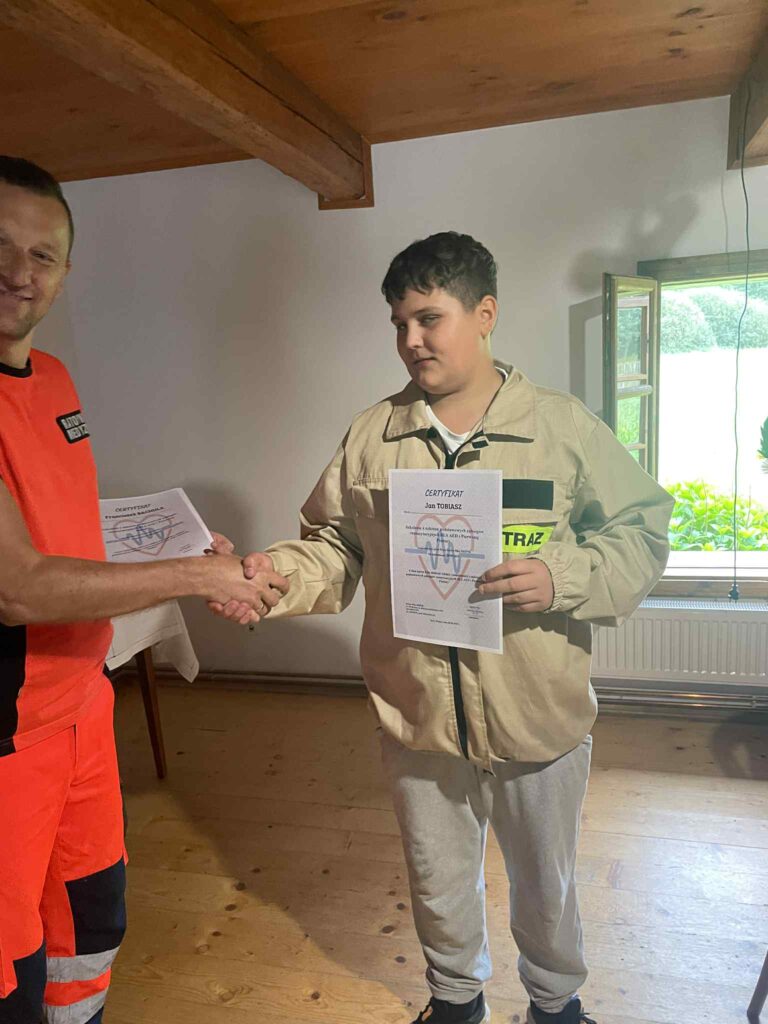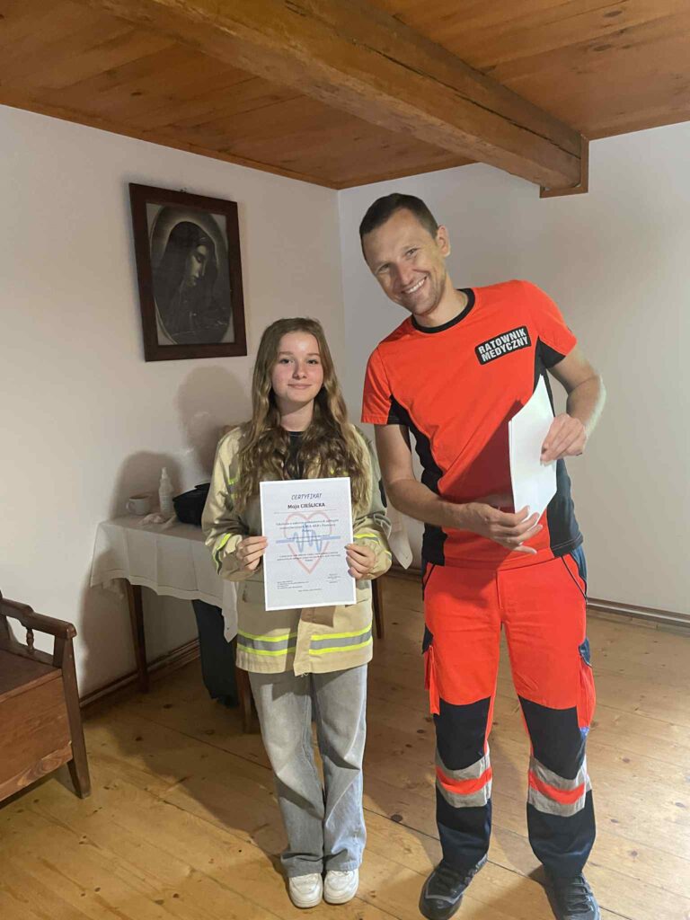 Zadanie zakończone 30 września 2025r. zawierało kilka działań. Młodzież uczestniczyła w zajęciach w Centrum Edukacji Przeciwpożarowej w Dobczycach. Tam zapoznali się z różnymi zagrożeniami, które spotkać możemy w sytuacjach życiowych oraz jakie podjąć działania ratownicze w danej sytuacji.