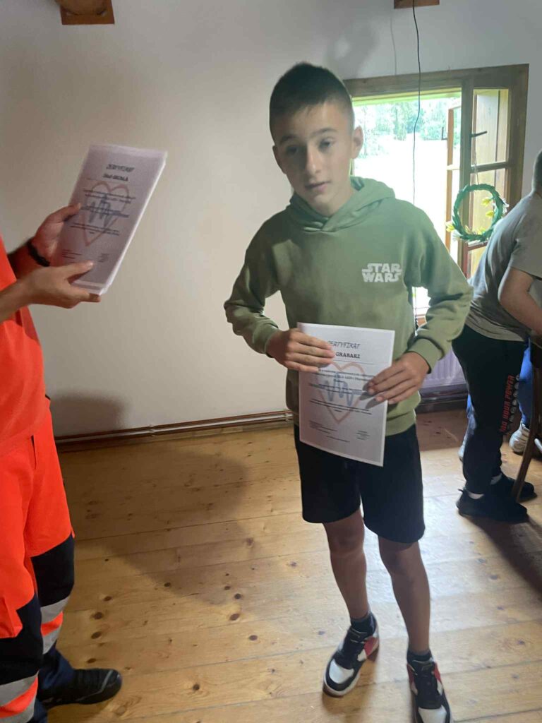 Ćwiczyli pod bacznym okiem ratownika medycznego Marcina Biłosa – Firma MEDYK. Całość działań zakończył test wiedzy i sprawdzian nabytych umiejętności praktycznych. Kolejne działania dotyczyły bezpieczeństwa w ruchu drogowym.