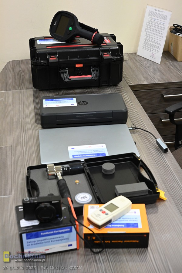 Komendant Dariusz Gałązka wylicza dodatkowe zakupy: – W ramach wyżej wymienionego programu zakupiono dodatkowo sprzęt do prowadzenia kontroli: wilgotnościomierze, czujniki czadu, aparat cyfrowy, kamerę termowizyjną, laptop i drukarkę mobilną, sprzęt do pobierania próbek popiołu, przeprowadzono szkolenie dla funkcjonariuszy, przygotowano i zakupiono materiały informacyjne (ulotki), które są rozdawane podczas kontroli. W ramach projektu finansowane jest również pobieranie próbek popiołu do analizy.