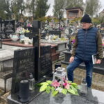 Tumlin, cmentarz. Ireneusz Pietraszek przy pomniku. / Fot. Dionizy Krawczyński – Radio Kielce
