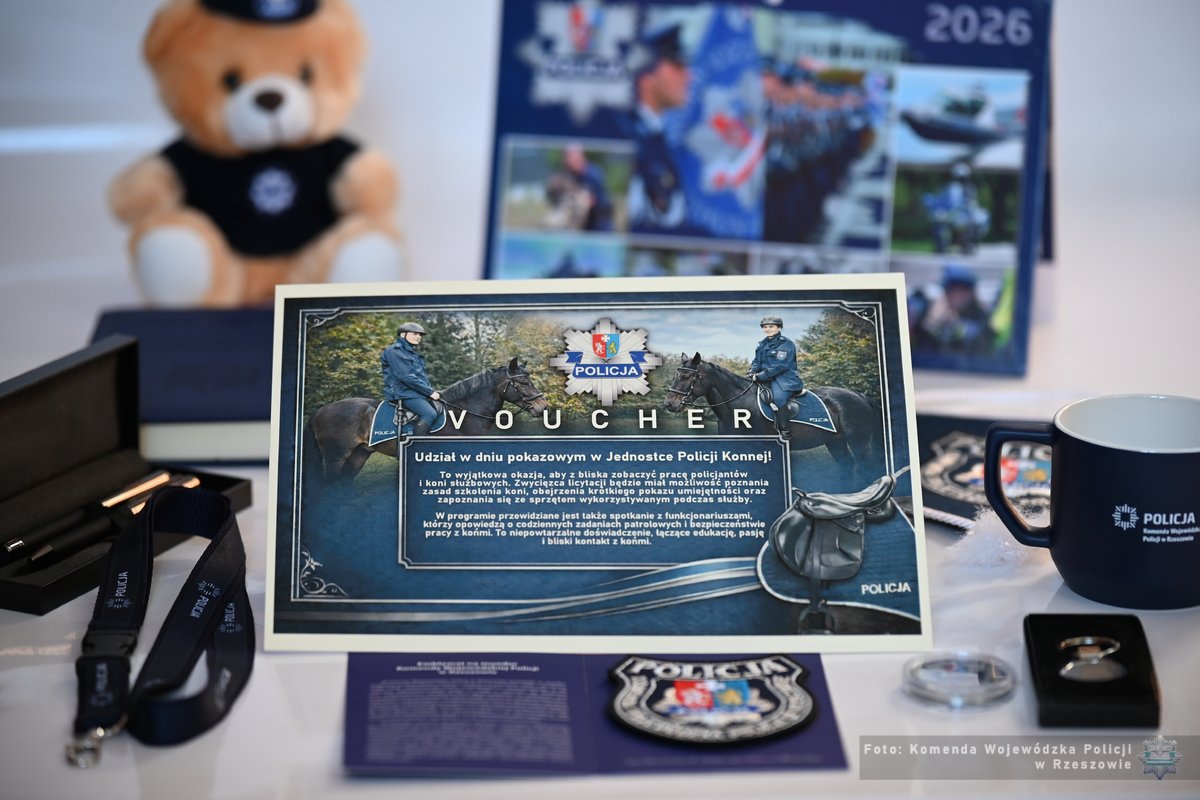 Podczas tegorocznych aukcji Wielkiej Orkiestry Świątecznej Pomocy można wylicytować specjalny voucher na udział w dniu pokazowym w Jednostce Policji Konnej - https://allegro.pl/oferta/18259822031.Także ustrzyccy policjanci włączyli się w charytatywną akcję Wielkiej Orkiestry Świątecznej Pomocy i przekazali na licytację policyjne gadżety.