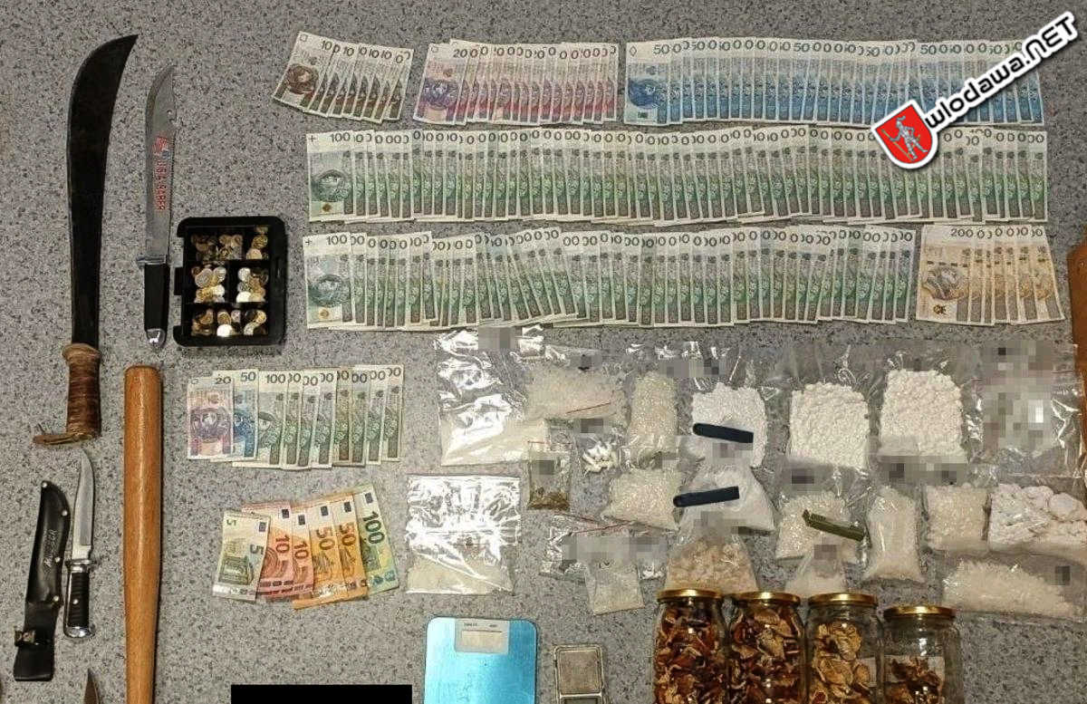 Dodatkowo mundurowi zabezpieczyli papierosy bez polskich znaków skarbowych akcyzy oraz wagi elektroniczne i gotówkę. Po przeprowadzeniu wstępnego badania funkcjonariusze potwierdzili, iż zabezpieczone środki to mefedron, amfetamina, plastry nasączone MDMA, marihuana, a także grzyby zawierające w swoim składzie substancje zabronione. Zabezpieczone środki wystarczyłyby do sporządzenia ponad 14 tysięcy porcji dilerskich.