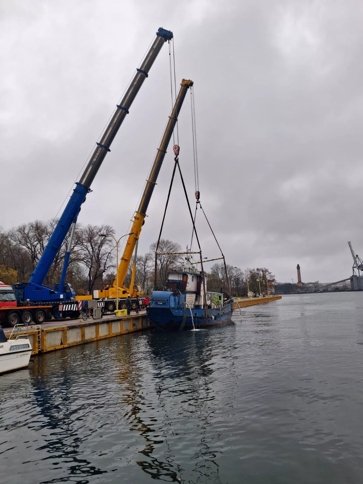- Świnoujście. Wydobycie wraku kutra Kehrwieder w Basenie Północnym